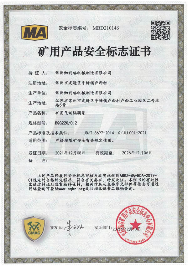 • 礦用安全標(biāo)志證書(shū)-BQG550/0.3