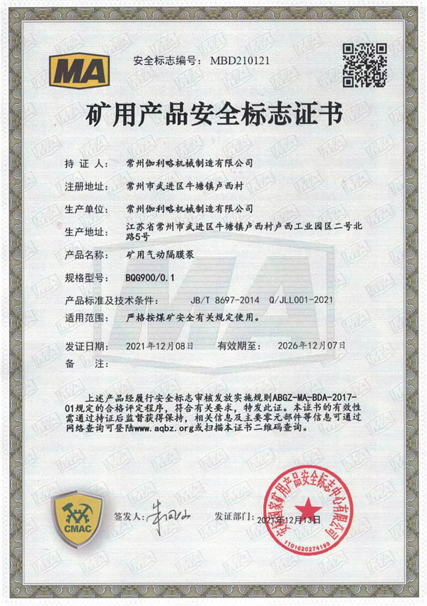• 礦用安全標(biāo)志證書(shū)-BQG900/0.1
